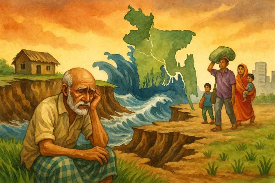 At least 10% of the land in 14 upazilas of Chattogram has disappeared into the sea in the last two decades. By 2050, one in seven people in Bangladesh will be displaced due to climate change. If the sea level rises by 19.6 inches (50 cm), Bangladesh could lose about 11% of its landmass.