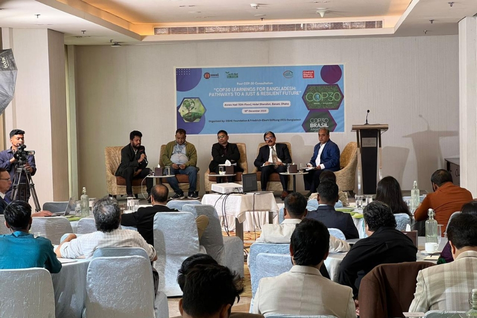 In a high-level national consultation titled “COP30 Learnings for Bangladesh: Pathways to a Just and Resilient Future”, policymakers, climate experts, labour leaders, and youth representatives gathered to outline how Bangladesh can transform the outcomes of COP30 into a fair and inclusive climate transition. The event was organised by the Just Transition Bangladesh Coalition (JTBC), OSHE Foundation, Friedrich Ebert Stiftung (FES) Bangladesh, and YouthNet Global.