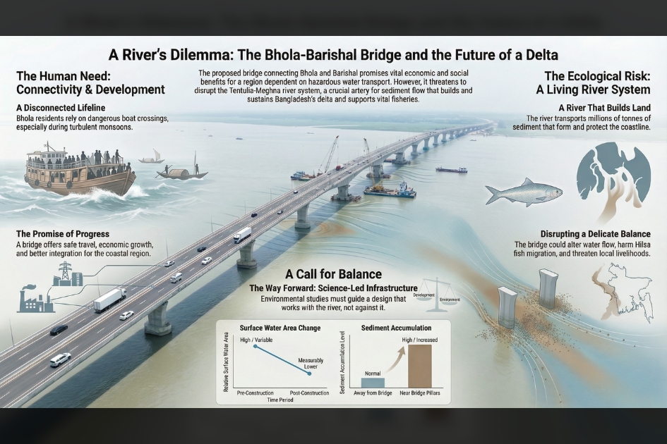 Bhola residents seek a bridge to Barishal for safer travel, yet scientists caution the Tentulia River’s dynamic sediment flow and fisheries could be disrupted without careful planning.