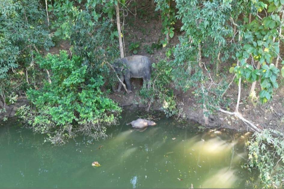The incident, which occurred late Monday in the Liton Hill area, has left forest officials struggling to retrieve the calf’s body as the grieving mother refuses to leave its side.