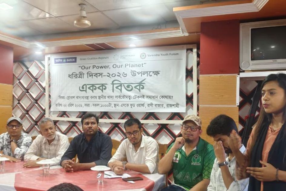 Young students in Rajshahi highlighted the importance of local food sovereignty, agroecology and climate justice during a solo debate competition held to mark Earth Day, as speakers called for stronger youth engagement to build a safe and sustainable food future.